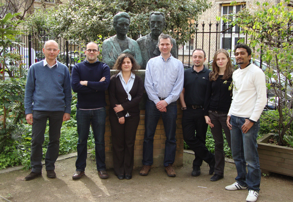 The “Functional Surfaces group “ - from left to right, standing by the busts of Pierre and Marie Curie: Pr François Rochet, Dr. Rabah Benbalagh (research engineer, UPMC), Debora Pierucci (PhD student SOLEIL/UPMC), Dr Jean-Jacques GALLET (associate professor, UPMC), Dr. Fabrice Bournel (associate professor, UPMC), Héloïse Tissot (Master 2 student, UPMC), Anzar Khaliq (PhD student, UPMC).