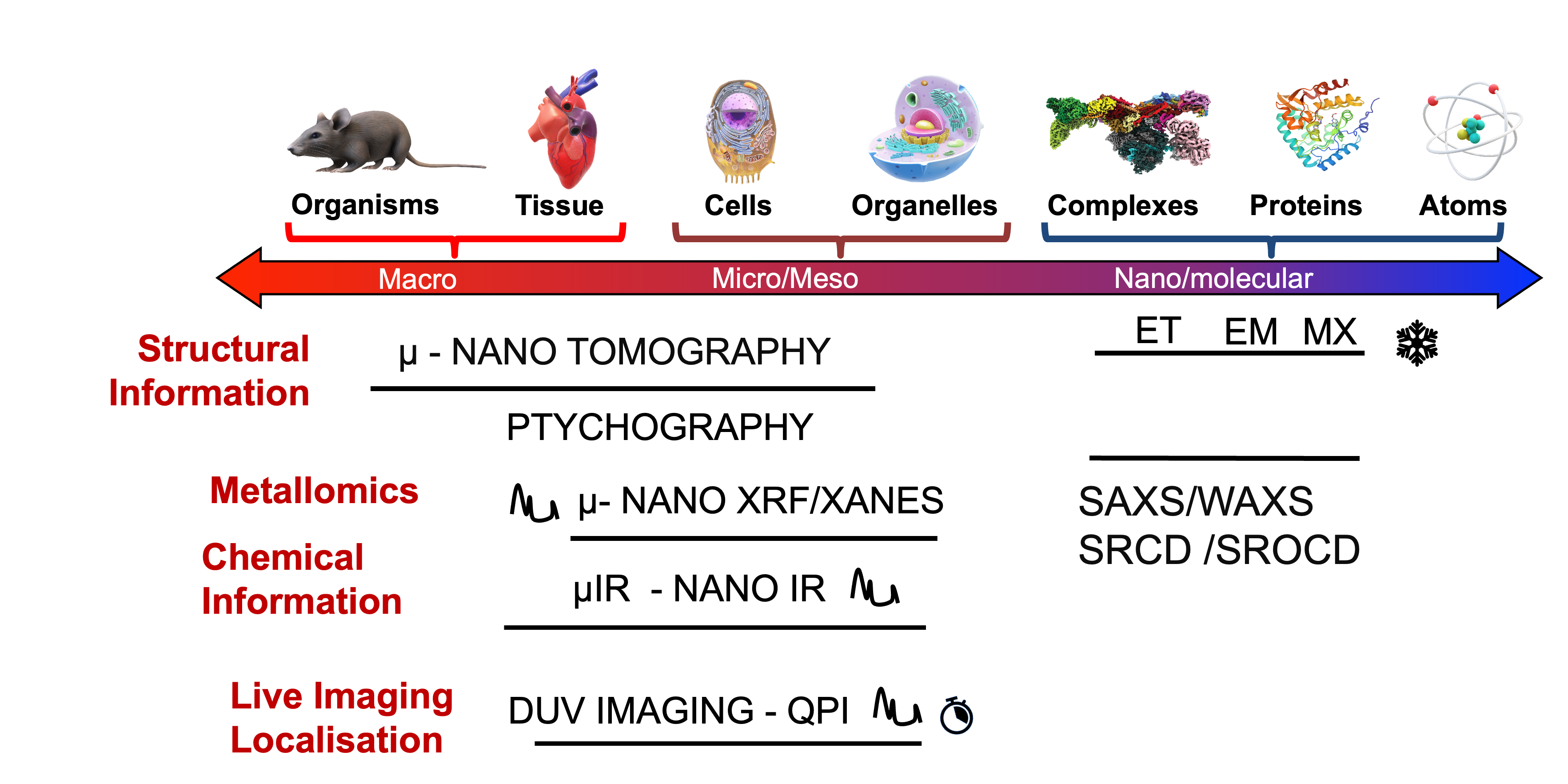 The Life sciences Scientific Section at SOLEIL is an active group consisting of about 30 experts in various fields. The ongoing upgrade of the SOLEIL synchrotron, SOLEIL II, will contribute to the emergence of methods aimed to improve the imaging capabilities of cells, tissues, and organs at high spatial and temporal resolution.