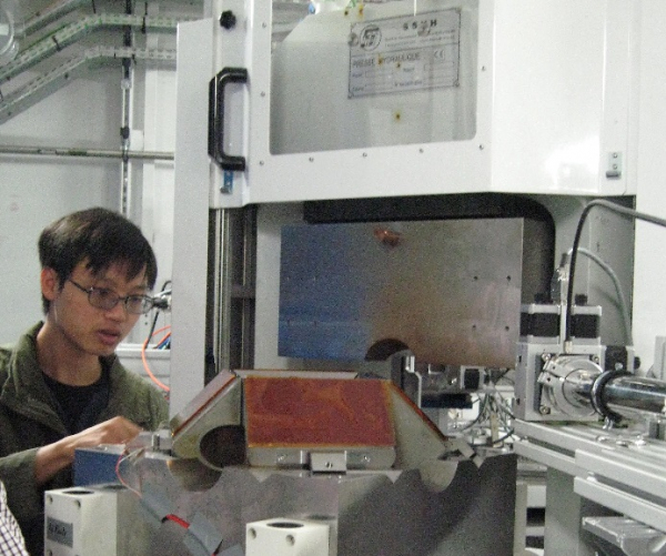 Figure 2 : Le Dr. Longjian Xie préparant une expérience sur la ligne de lumière PSICHE du Synchrotron SOLEIL, à Saint Aubin, près de Paris.