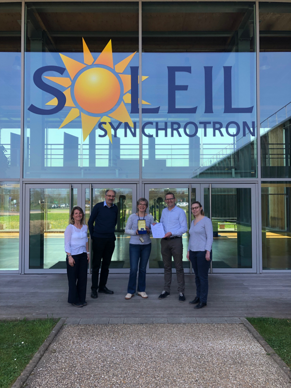 Une étape essentielle de cette démarche a été franchie le 1er avril 2019, avec la remise par le LNE d'un premier étalon avec son certificat d’étalonnage à SOLEIL (voir photo ci-dessous).
