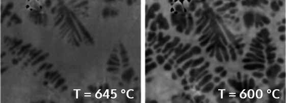 Grâce à l’amélioration de la qualité des faisceaux de rayons X, des détecteurs, des algorithmes de reconstruction et au développement de cellules in situ, l’étude non destructive de la microstructure de matériaux soumis à des conditions extrêmes (mécaniques, thermiques...) évoluant dans le temps est devenue possible par microtomographie in situ à grande cadence d’acquisition de données. Dans cette étude réalisée avec la start-up 3Dmagination, observer et quantifier la croissance dendritique au cours de la solidification d’un alliage (Al-Cu) afin de comprendre les mécanismes dominants de ce processus montre le potentiel de la technique pour de nombreux enjeux industriels.