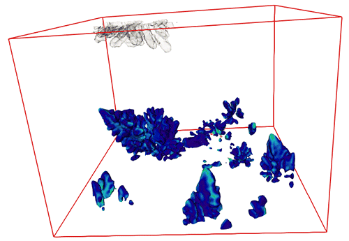 La coalescence de dendrites semble être le mécanisme dominant de grossissement des dendrites. Contrairement aux travaux de Limodin et al. 20091 , il n’a pas été observé de refusions de petits bras de dendrites au bénéfice de bras plus larges par le mécanisme d’Ostwald ce qui est probablement lié à une vitesse de refroidissement plus élevée. Une attention particulière a été portée au traitement des données tomographiques afin d’extraire la vitesse locale en 3D des pointes de dendrites, Vtip. En effet, pour une surfusion donnée, on s’attend à ce que les bras de dendrites grandissent avec un produit Vtip x Rtip = cte (Gibbs et al., Sci Rep 20152 ; Daudin et al., Acta Mat 2016) 3 . La figure 2 montre que cette relation semble être vérifiée dans l’expérience réalisée.