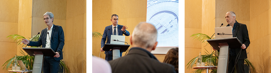 Devant les collègues de SOLEIL et la quarantaine d’invités réunis dans un auditorium plein, François JACQ puis Antoine PETIT ont ainsi réaffirmé le soutien fort de nos tutelles, CEA et CNRS, au projet. Pour finir, le ministre, Monsieur Philippe BAPTISTE, a confirmé l’engagement de l’État envers SOLEIL II, dans la continuité du soutien financier de 50 M€ déjà octroyé par le ministère de l’Enseignement supérieur et de la Recherche (MESR) en 2024. Il a souligné la nécessité, pour réaliser dans leur totalité les deux étapes du projet, d’identifier des opportunités de financements complémentaires, suivant le modèle éprouvé lors de la construction de SOLEIL au début des années 2000.