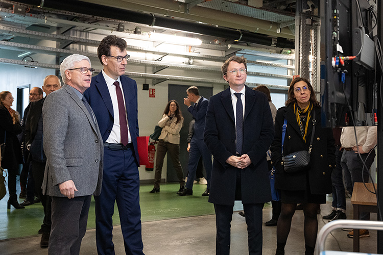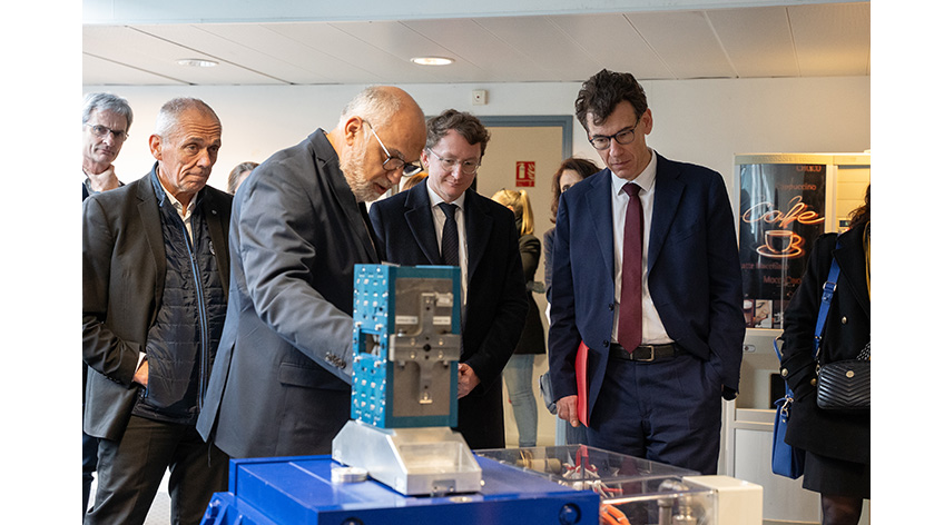 Après avoir visité le hall expérimental abritant les 29 lignes de lumière du synchrotron et la salle de contrôle des accélérateurs, Philippe BAPTISTE et la délégation ont eu un aperçu des défis technologiques que les équipes de SOLEIL sont en train de relever pour SOLEIL II. Les tous premiers prototypes d’aimant et de chambre à vide, comparés aux dispositifs actuels, illustrent les prouesses de conception et de construction qui permettent la miniaturisation imposée par le nouvel anneau de stockage pour atteindre les performances exceptionnelles visées.