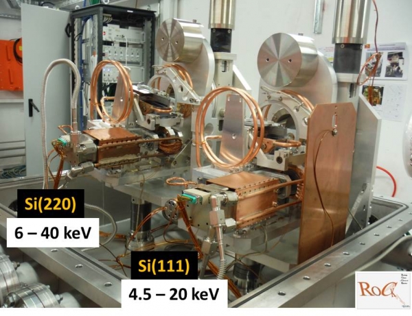 2 monochromateurs QuEXAFS (Si111 et Si220) entre un miroir plan et un miroir courbable en Si à trois pistes (Pd, Pt et B4C) assurant le rejet des harmoniques