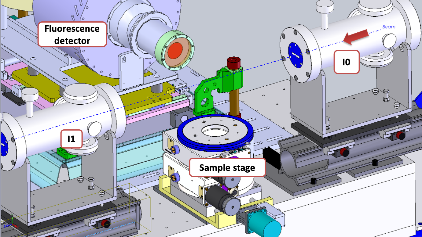 - Modes Transmission (Reflexafs) and Fluorescence possible
